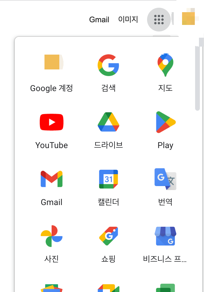 - 구글 드라이브는 크롬 브라우저에서 우측 상단에 점 아홉개가 있습니다.