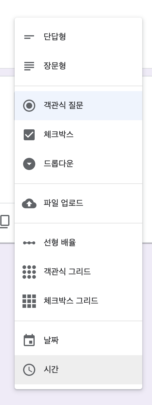클릭하면 아래와 같이 질문 종류가 나옵니다.