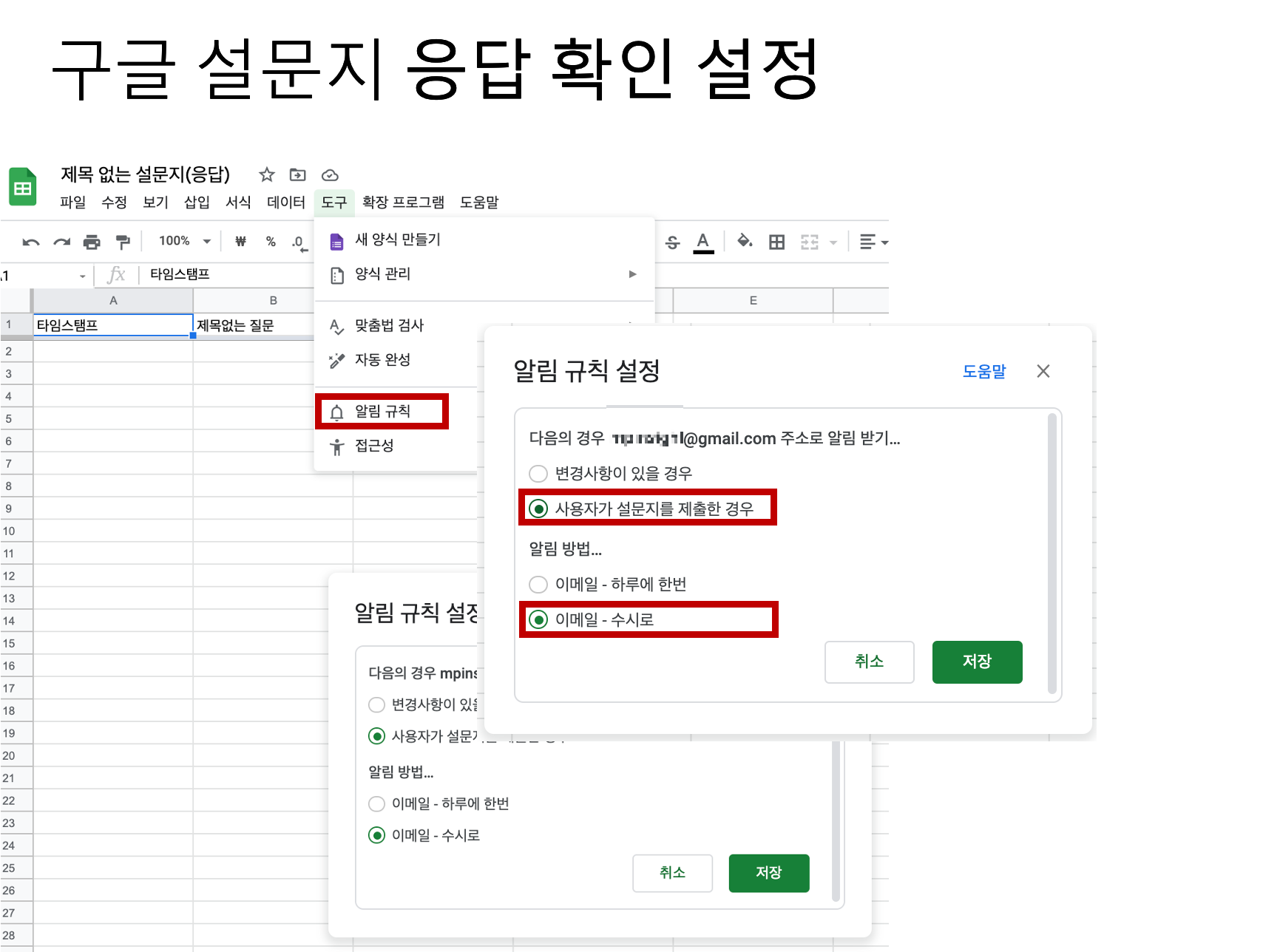 사용자가 설문지를 제출한 경우 == 이메일 - 수시로 받기 의 예입니다.