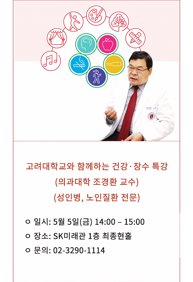고려대학교 조경환 교수님의 건강과 장수에 대한 인사이트를 얻을 수 있는 좋은 기회입니다.