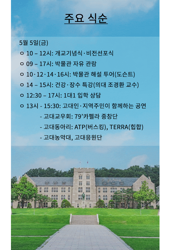 매년 5월5일에는 고려대학교에서 즐거운 일이 생깁니다.