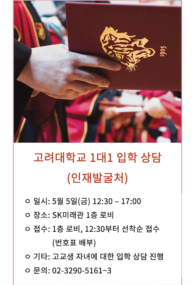 SK 미래관은 고대 정문에서 왼쪽에 있는 건물입니다. 12:30부터 선착순 접수하고 정해진 시간에 오면 상담을 할 수 있습니다.